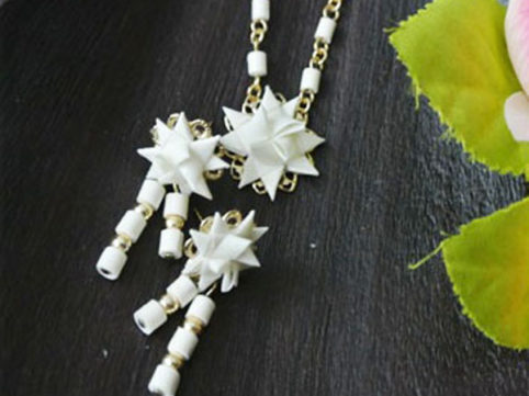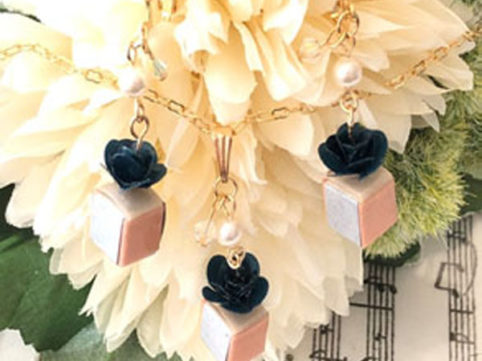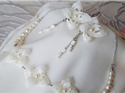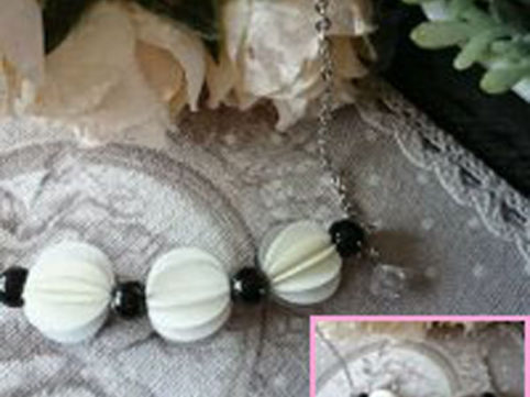 作品使用ペーパーNO.136 NO.141 または NO.136 NO.140 材料 ラインペーパー10mm 1/4 4枚 シャンテ 16枚Tピンコットンパール、グラスビーズなど 丸カン 2個 作り方 ★ネックレス1.2...