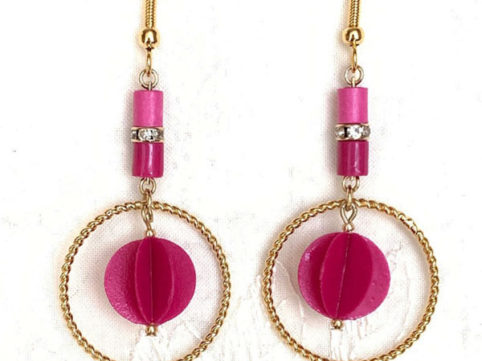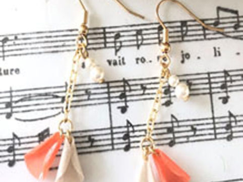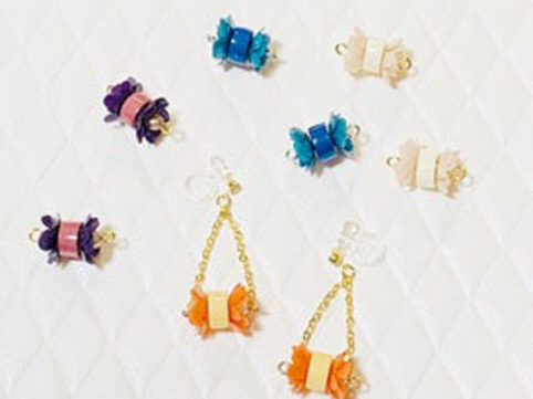 作品使用ペーパーNO.47 NO.72 材料 ペーパー(ドット)ラインペーパー 5mmフープ 2個ロンデル(5mm) 2個イヤリング(ピアス)金具9ピンTピン小ビーズ丸カン 作り方 ドット6枚を貼り合わせ、Tピンに小ビ...