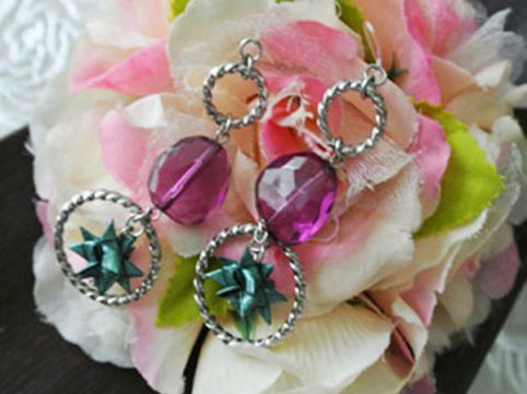 作品使用ペーパーNO.138 材料 4mmのスターフラワー 2つシルバーの飾り(リング大小2つずつ)大きめのビーズ 2つ 作り方 4mmのラインペーパーで、スターフラワーを2つ作る。 スターフラワーにレジンを塗っておく。...