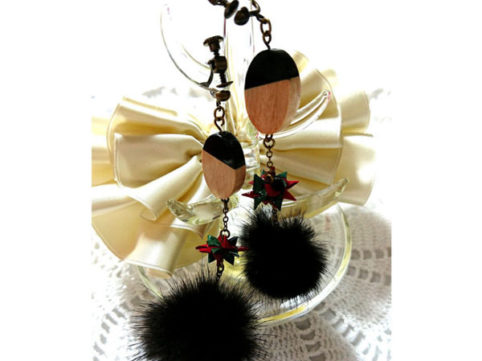 作品使用ペーパーNO.92 NO.102 材料 スターフラワー 2個 (RP4-NO.92とNO.102) ウッド&アクリルビーズ平オーバル(黒)チャーム2個9ピン 0.8*25mm 2本Tピン 0.8*20mm 2本フ...
