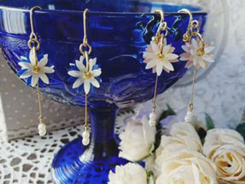 材料 ドットスワロパール3mm、4mmチェーン(約2cm、丸7個分)イヤリングまたはピアス 作り方 ドットの端に穴をあけ、丸カンを通す(レジン後では白くなる事がある為)。 美乃花のバーを使って、カタカナのハの字になるよう...