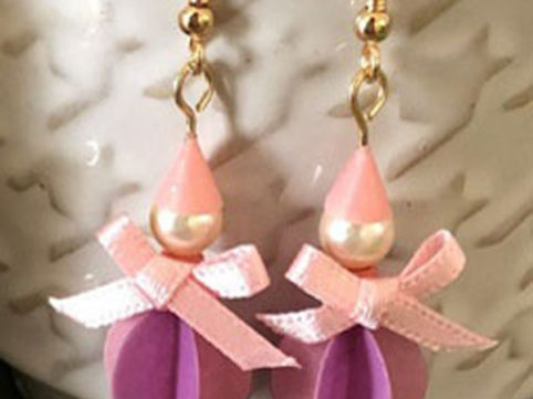 材料 ドット 6mmパールラインペーパー4mm 1/4リボン(3mm幅サテンリボンでも作れます)菊座(CH05G)Tピン 75mmイヤリングまたはピアス 作り方 ドットを半分に折り切り、丸めて帽子にする(切った所の真ん中...