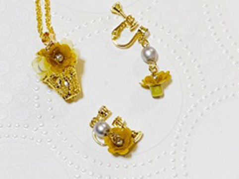 作品使用ペーパーNO.130 材料 シャンテ座金(花・白)(145 B004R)半パール 10mm3mmパール ネックレスR(243 ER05)半パール 3mmメタルパーツ(CH08OR) 作り方 座金に半パールをレジン...