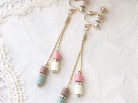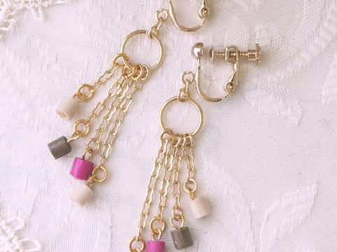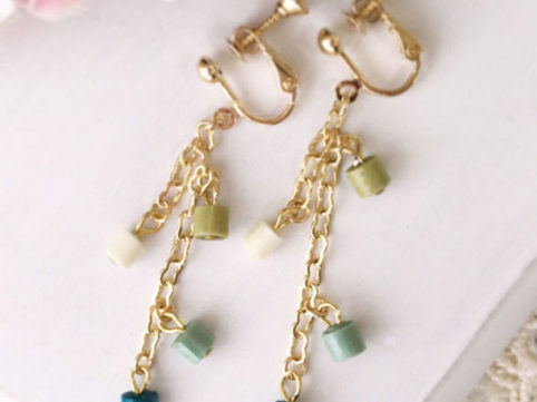 作品使用ペーパーNO.58 材料 ラインペーパー 1/4を2個デザインつなぎパーツ 2個(またはロングの9ピン)チェーン 5cm程度を2本 Tピン 2個スワロパール丸カン 4個中ビーズ 2個ピアスまたはイヤリングパーツ ...