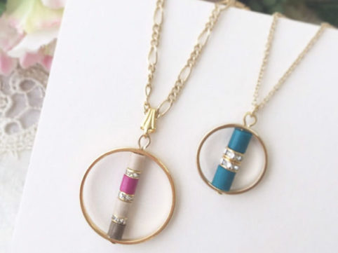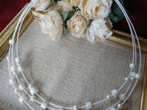 作品使用ペーパーNO.136 NO.141 または NO.136 NO.140 材料 ラインペーパー10mm 1/4 4枚 シャンテ 16枚Tピンコットンパール、グラスビーズなど 丸カン 2個 作り方 ★ネックレス1.2...