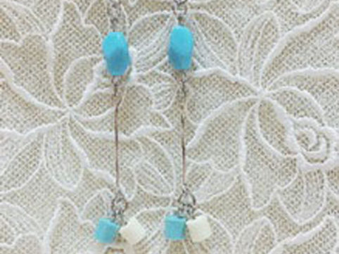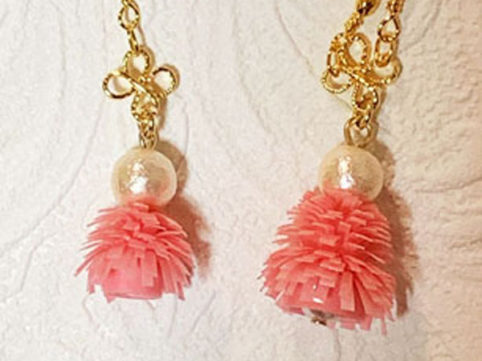 作品使用ペーパーNO.78 材料 ラインペーパー4mm 1/2 1/4パール天然石ターコイズネックレスチェーンピアスまたはイヤリングリース風のパーツピアスに合う台座 作り方 作品紹介 フリンジでブルーの可愛いお花のリース...