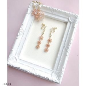 材料 マノンパール4mm アルミキャップ 6個(ロザフィshop) 9ピン40mm 30mm 20mmを2本ずつ丸カンピアス金具 作り方 アルミキャップを開いて丸カンを1つつける。 マノンのお花を作ってアルミキャップに貼...