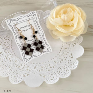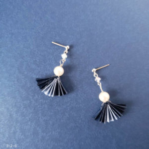 作品使用ペーパーNO.06 材料 ラインペーパー4mm 2枚 スワロフスキービース中(黒) 1個×2スワロフスキービーズ小(黒) 3個×2シャンテ(つけたい場合には) 1個×2丸カン大 2個×29ピン 1個×2イヤリング...