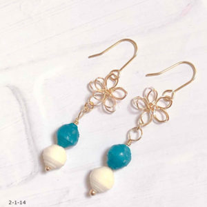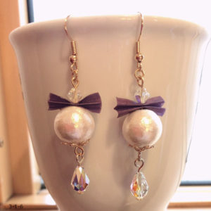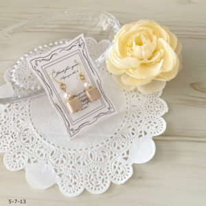 作品使用ペーパーNO.5 NO.126 材料 ラインペーパー5mm 1本コットンパール 8mm 2個金色のビーズ 2個スターダスト2個(ロザフィshop) ワイヤーフープラウンド30mm 2個(貴和製作所) 丸カンピアス...