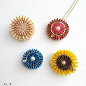 材料 デイジー型2色を6枚ずつパール 4mmを6個 8mmを1個 2mmと3mmを合わせて20個程度 リース型ブローチ台 作り方 デイジー型色違いをずらして2枚重ね。ボンドで貼り合わせてから丸みをつける。 裏と表の両面に...