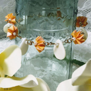 作品使用ペーパーNO.53 NO.114 材料 ラインペーパー13mm 1/8 6枚ソロバンビーズ4mm 2個パール8mm 2個 作り方 ジャバラに折って、それぞれにスクリューポンチで穴を開ける。 それぞれを扇の形に広げ...