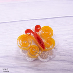 材料 ラインペーパー4mm 2本 ブローチ土台レース 作り方 羽用 1/2にカット 1/3で折る。 変形ハートを作る。(画像1) 胴体用 1/4 2本カット 1本巻いて丸型テンプレートの7mmに合わせて、ボンドで止める。...