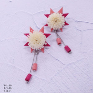 材料 ラインペーパー5mm スター4本・フリンジ2本 座金 2個玉ピン20mm 2本・30mm 2本貼り付けピアス・イヤリングCカン 2個 作り方 スターフラワーの途中までを作り、切り落とす。 フリンジ1本をスターフラワ...