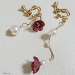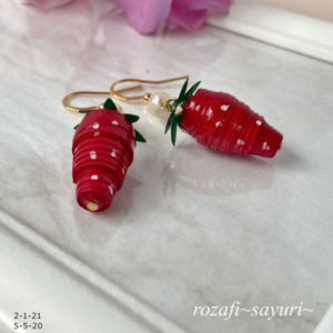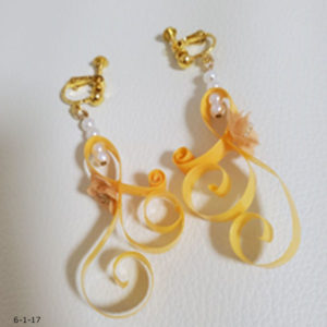 作品使用ペーパーNO.44 材料 花びら 5枚(1枚の花びらは2.5㎝) ※こちらの作品は30枚必要。イヤリングはラインペーパー4mmをさらに縦にカットし、2mm幅で作成。丸カン 0.75mmイヤリング金具 作り方 ※詳...