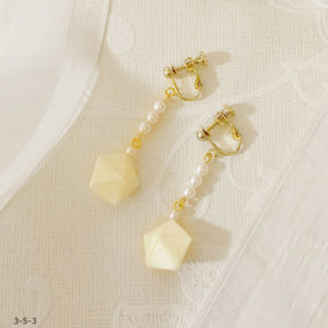 作品使用ペーパーNO.10 三角ペーパーNO.70 材料 ラインペーパー5mm三角ペーパーヒートン(貴和製作所) 樹脂パールピアス 作り方 ペーパービーズを円錐状に2個作る。 細いほうにヒートンを付けコーティングする。 ...