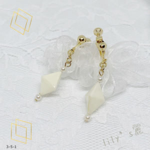 作品使用ペーパーNO.31 材料 ラインペーパー8mm 2本 パール 6mm 2個 メタルパーツ小G 2個(ロザフィshop) Tピン丸カンピアス金具 作り方 キューブを2個作る。 Tピンにキューブ、メタルパーツ、パール...