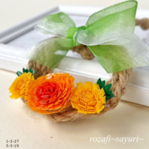 作品使用ペーパーNO.63 NO.64 NO.66 NO.80 材料 ラインペーパー5mm 64番1.5本 66番0.5本リボンラインペーパー5mm 63番1本X2シャンテ 80番 2枚麻ひも 作り方 麻ひもでリースを作...