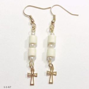 作品使用ペーパーNO.02 材料 ラインペーパー5mm樹脂パール9ピンG(0.7×30mm)十字架パーツ丸カンGピアスorイヤリング 作り方 ラインペーパー5mmを1/2サイズで、プチロールを4個作る。 9ピンに樹脂パー...